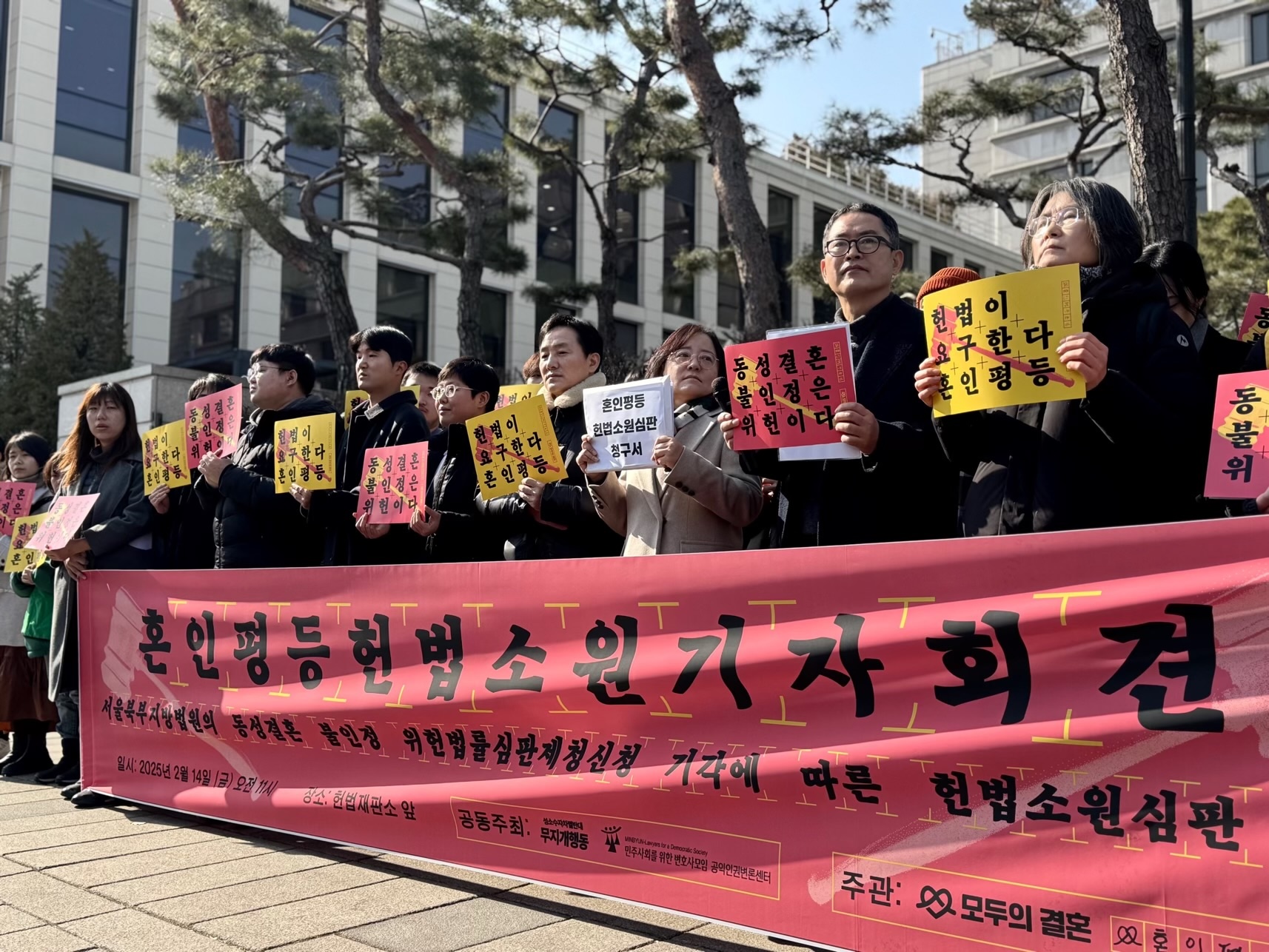지난 2월 14일, 헌재 앞에서 열린 '혼인평등헌법소원 기자회견' 현장. 참세상