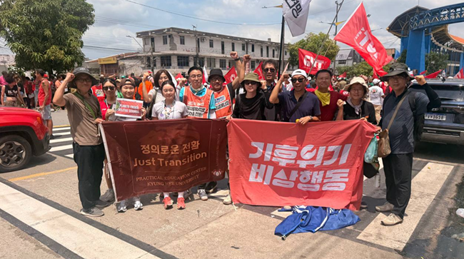 민주노총 참가단은 15일 국제 공동행동의 날 행사인 ‘기후 민중행진(People’s March for Climate)’과 브라질 파라연방대학(UFPA)에서 열린 민중정상회의에도 참여해 “공공재생에너지 확대”의 중요성을 알렸다.