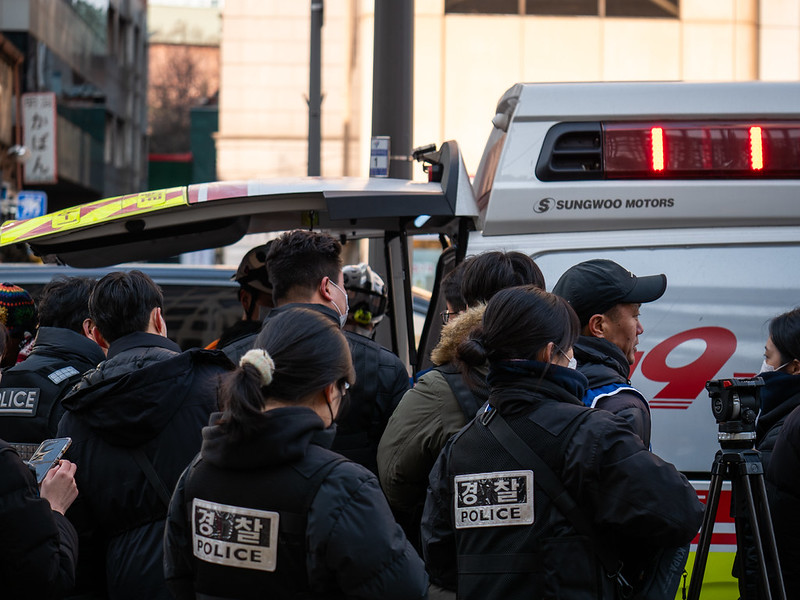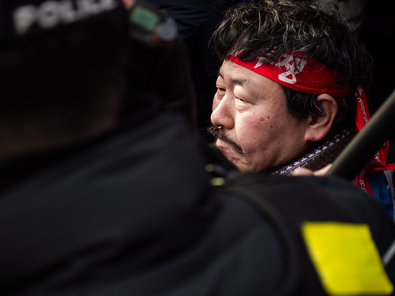 경찰병력과 연대시민 사이에 실랑이가 벌어지고 있다. 참세상 박도형 기자