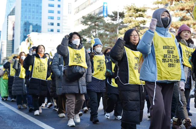 행진을 마친 뒤 열린 기자회견에서 노조는 이 문제가 개별 기관의 노사 갈등을 넘어 정부의 감독 부재에서 비롯됐다고 주장했다국민건강보험공단 본사를 관할하는 원주고용노동지청이 전환 과정에서 발생한 수습임용 강제경력·연차 미인정차별적 전환 기준 등에 대해 실질적인 점검과 시정 조치를 하지 않고 있다는 것이다.