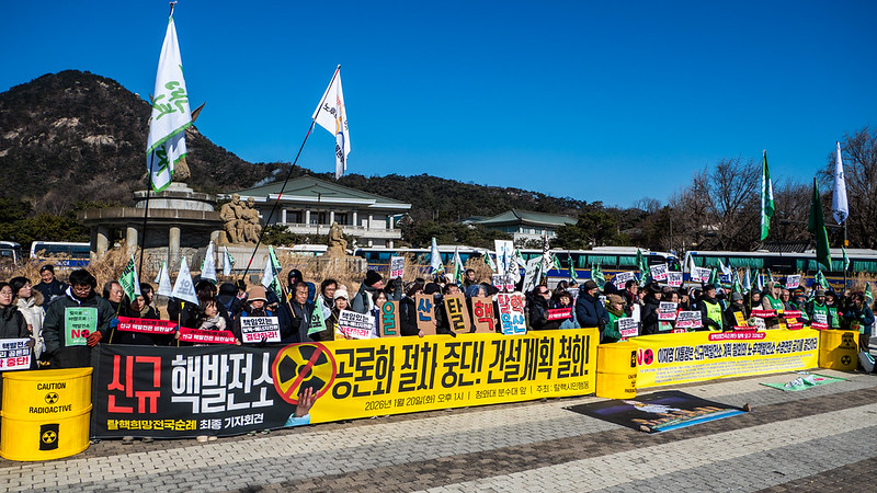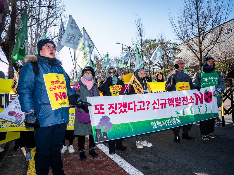 탈핵시민행동이 청와대 앞 마무리 기자회견을 가지고 있다. 참세상 박도형 기자.