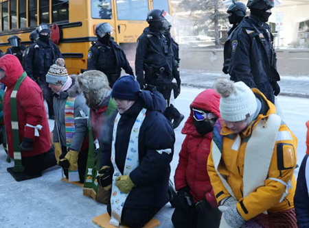 세계 분쟁 지역의 비폭력 전략을 따르는 반ICE 시위대