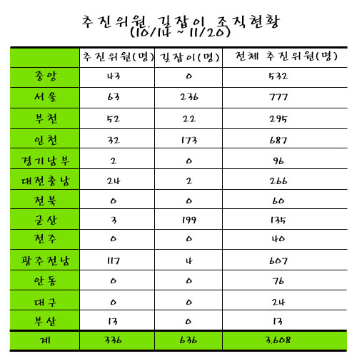 광주전남지역의 활동이 단연 돋보입니다. 특히 전교조 해남·나주지부, 기아차노조 광주지부, 나주농민회 등 노동자, 농민들의 추진위원 가입이 급...