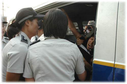 부시가 도착한 그 시간, 나는 미란다 원칙도 고지도 받지 못한 채, 웃통과 바지가 벗겨져 맨살과 팬 티가 다 드러나는 수모를 겪으며 경찰차에 ...