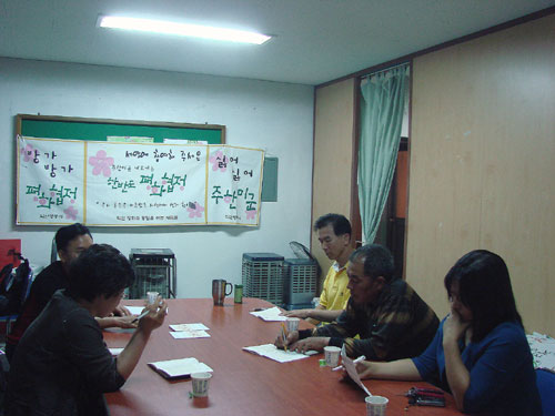 9월 22일 저녁 7시30분 사무실에서 강익현 한의원 원장님. 전북여성노동자대표 김희전 대표님, 익산평통사 운영위원 김유순, 구본수 회원, 김...
