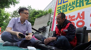 민주노총 세종충남지역노조(노조) 이귀진 위원장이 국립생태원의 제대로 된 정규직 전환을 요구하며 청와대 앞에서 단식한 지 오늘로 34일째다. 노조...