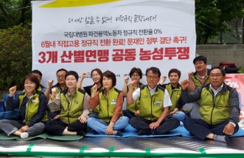 국립대병원 비정규직의 정규직화를 요구하면서 3개 산별연맹 노조가 청와대 앞 공동농성에 돌입했다. 파견·용역 노동자들의 계약기간이 만료되고 있지만...