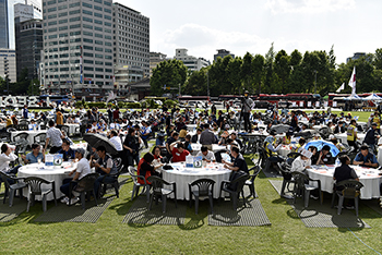 재벌 체제 개혁을 위한 ‘을들의 만민공동회’가 11일 서울시청 광장에서 열렸다. 만민공동회에는 7백 명에 달하는 노동자, 시민이 모였다. 만민공...