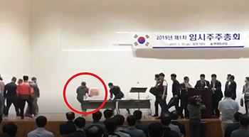 현대중공업이 ‘3분 주주총회’를 날치기 통과하는 가운데, 용역 폭력, 경찰 비호가 있었다는 사실이 드러났다. 현대중공업은 지난 31일 오전 11...