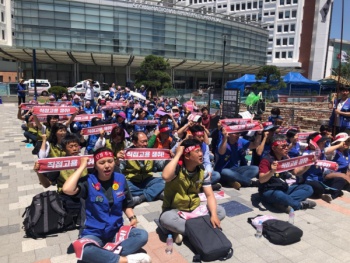 금속노조 현대중공업지부가 28일 현대중공업 물적 분할을 반대하며 전체 조합원(약 1만 2천 명) 전면 파업에 돌입했다. 전면 파업은 오는 31일...