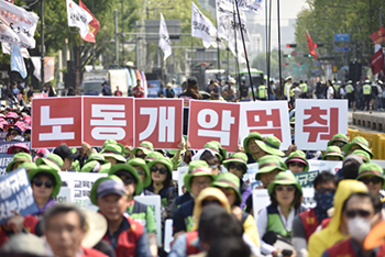 정부가 ILO 핵심협약 비준 절차에 돌입하겠다는 동시에 관련 법 개정 추진 계획도 밝혀 노동개악의 가능성이 열렸다. 고용노동부는 법 개정에 경사...