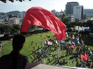 김명환 민주노총 위원장이 경제사회노동위원회 참여 의지를 피력한 가운데, 노동계 좌파 그룹들이 한데 모여 민주노총의 경사노위 참여를 저지하고 투쟁...