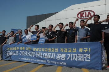 기아차가 정규직 관리자를 동원한 구사대로 비정규직 파업을 탄압하는 가운데, 또 다른 정규직 노동자들이 원청 폭력과 노노갈등 조장을 규탄, 비정규...