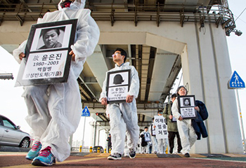 “무슨 군사작전 훈련처럼 대열을 정비하고 80-100여 명의 원청 관리자들이 저희 1명당 적게는 7-8명 많게는 10명 이상이 달라붙어서 무자비...