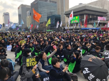 110주년 3.8 세계 여성의 날을 맞아 2천여 명의 여성 노동자들이 광장에 모여 조기 퇴근 시위에 나섰다. 미투 운동이 전 영역으로 확산하는 ...