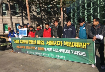 서울 지하철 9호선 노조가 시민의 안전과 노동조건 개선 등을 요구하며 30일부터 파업에 나서는 가운데 박원순 서울시장에게 책임을 요구하는 시민사...