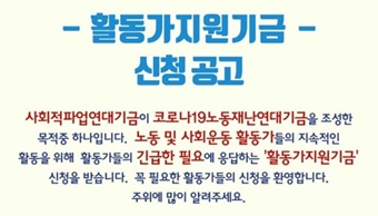 ‘사회적파업연대기금’이 불안정 노동에 놓인 활동가들에게 총 500만 원을 지원한다. 대상은 노동 및 사회운동 활동가이며, 총 500만 원을 책정...