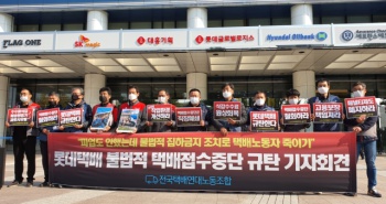 25일 롯데택배의 기습적인 집하금지 조치에 택배노동자들이 ‘불법적 직장폐쇄’라며 반발하고 나섰다. 집하금지 조치는 해당 구역의 택배를 접수받지 ...