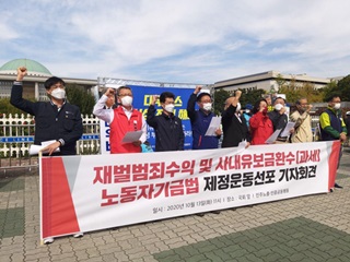 노동시민사회단체가 재벌 범죄수익을 환수하고, 재벌 사내유보금에 과세 제도를 개정해 노동자 기금을 설치하자는 법제정 운동에 나섰다. 재벌의 천문학...