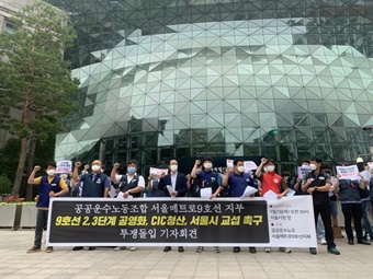 오는 3일 9호선 2·3단계 민간위탁 모집이 시작되는 가운데, 9호선 2·3단계 노동자들이 민간위탁 철회와 서울시와의 직접 교섭을 요구하며 투쟁...