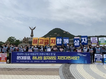 노동자들이 코로나19 재난 시기, 비정규직에 대한 고용유지가 우선돼야 한다며 투쟁을 선포했다. 민주노총 서울본부는 재난기간 해고금지법과 전국민고...