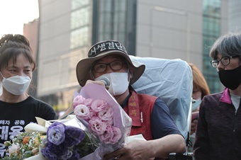 삼성 해고자 김용희 씨가 25m 철탑 위에 오른 지 355일 만에 땅을 밟았다. 삼성과 김용희 측의 협상이 타결된 까닭이다. 합의 결과에 따라 ...