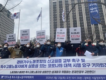 공항·항공노동자들이 한시적 해고금지 등을 내용으로 한 '고용안정 3대 요구' 1만 서명을 청와대에 전달했다.