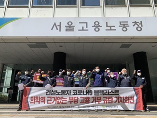 민주노총 서울본부, 서울민중행동은 6일 오전 서울시 중구 서울지방고용노동청 앞에서 기자회견을 열고 “코로나-19로 무급휴직, 묻지마 해고 사태가...