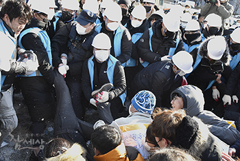 종로구청 직원 약 100명, 용역 200여 명이 27일 문중원 대책위 상황실 농성장을 강제 철거했다. 이 과정에서 문중원 열사의 부인인 오은주 ...