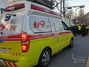 2시간 넘게 청와대 사랑채 인근 도로서 누운 채 농성…“길 열어달라” 요구