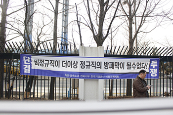 600일 째 직접고용 정규직 전환 투쟁을 벌이고 있는 공공운수노조 가스공사비정규지부가 9일 오전 7시 50분 경 한국가스공사 대구 본사 앞 천막...