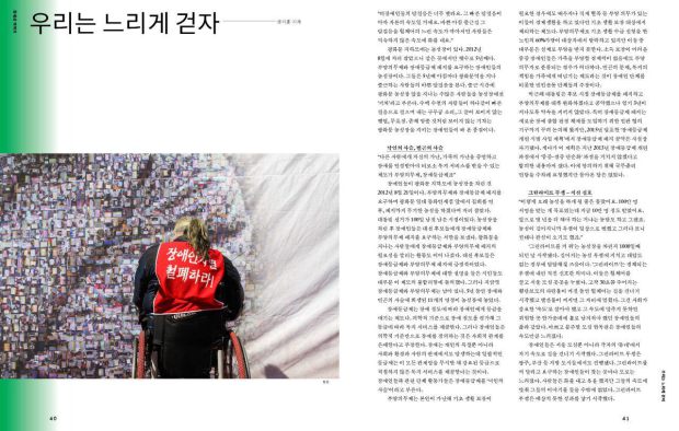 “비장애인들의 발걸음은 너무 빨라요. 그 빠른 발걸음이 아마 자본의 속도일 거예요. 바쁜 아침 출근길 그 발걸음을 휠체어의 느린 속도가 막아서면...