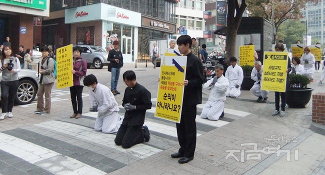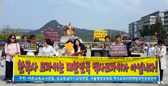 정부가 역사교과서 국정화 방안을 발표하던 그 시간 교육시민사회단체들은 민주주의와 역사교육의 죽음을 선포하고 나섰다.