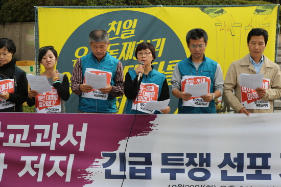교육계는 물론 시민사회단체들이 비상시국회의를 열고 국민들에게 박근혜 정부의 한국사교과서 국정화 폭주를 멈추기 위해 오는 31일 열리는 한국사 교...