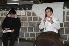 세월호 참사 1주기를 앞두고 열린 유가족과 대학생들의 간담회가 대학 측의 장소 대여 불허로 인해 교문 밖에서 진행되어야만 했다.