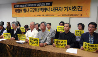 세월호참사 국민대책회의가 여야의 세월호 특별법 합의를 거부하겠다는 뜻을 밝혔다. 이들은 여야가 세월호 유족들 뿐 아니라 성역 없는 진상조사를 요...