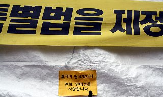 서울 광화문 단식농성장에서 세월호 특별법 제정을 촉구하며 40일째 단식농성 중인 유민이 아빠 김영오 씨의 건강이 악화됐다.