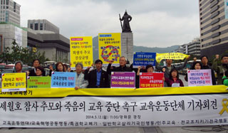 교육운동단체들이 현재의 교육체제가 세월호 참사를 일으켰다며 교육봉기를 선언했다. 이들은 교육을 돈벌이 수단으로 전락시키는 교육 영리화 정책과 대...