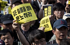 박근혜 대통령 면담과 김시곤 KBS보도국장 파면, KBS사장의 공식적인 사과 등을 요구하며 청와대 인근에서 연좌 농성을 벌이던 세월호 희생자 유...