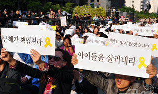 거대한 슬픔을 공유한 사람들은 “아이들을 살려내라”며 진상규명과 박근혜 대통령의 책임을 묻는 촛불로 안산 번화가를 덮었다.