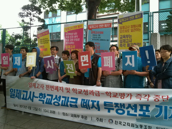 일제고사 폐지와 학교평가·학교성과급 폐지를 위해 교사와 학부모가 나섰다. 전국교직원노동조합과 일제고사 반대 시민모임은 12일 오전 10시 30분...