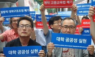 민교협, 전국교수노조, 학단협, 비정규교수노조 등 교수학술 4단체는 14일 교육부 앞에서 결의대회에 진행, 일방적 대학구조조정 폐기와 대학공공성...