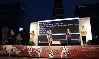 18회 서울인권영화제가 23일 서울 청계광장에서 서울인권영화제 주최로 개막식을 열었다. 서울인권영화제는 청계광장에서 나흘간 열리며 △이주_반성폭...