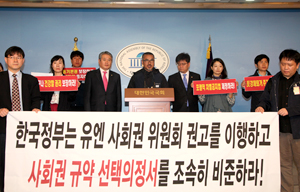 오는 5일, 한국정부가 당사국인 “유엔 경제적, 사회적 및 문화적 권리에 관한 국제규약”(UN 사회권 규약)의 선택의정서 정식 발효를 앞두고 용...