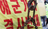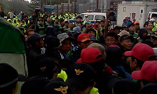 제주해군기지가 건설 중인 강정마을에서 서귀포시청과 서귀포경찰측이 10일 예정대로 해군기지 공사장 앞 천막농성장 강제 철거를 강행해 부상자와 연행...