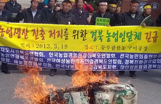 FTA 지원금이 농업개방으로 인한 피해 농가가 아닌 대기업의 농업 분야 진출에 지원돼 농민단체의 반발을 사고 있다.