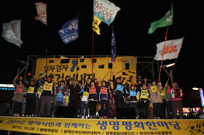 지난 10월 5일 제주도 강정마을에서 출발해 전국을 순회중인 ‘2012 생명평화대행진’ 참가단이 30일 수원에 도착했다.