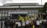 16일 오후 2시, 임종룡 국무총리실장을 비롯한 정부 관계자들이 제주도청을 방문한 가운데 강정마을 주민을 비롯한 평화활동가, 성직자들이 도청 앞...