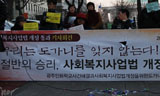 사회복지사업법(아래 사복법) 개정안이 국회 본회의를 통과한 직후 여의도 이룸센터 앞에서 법 개정에 함께한 이들이 모여 자축하고 이후 결의를 다지...