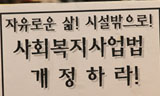 행사장 점거한 장애인들 "역사적 과오를 되풀이 말라" 경고